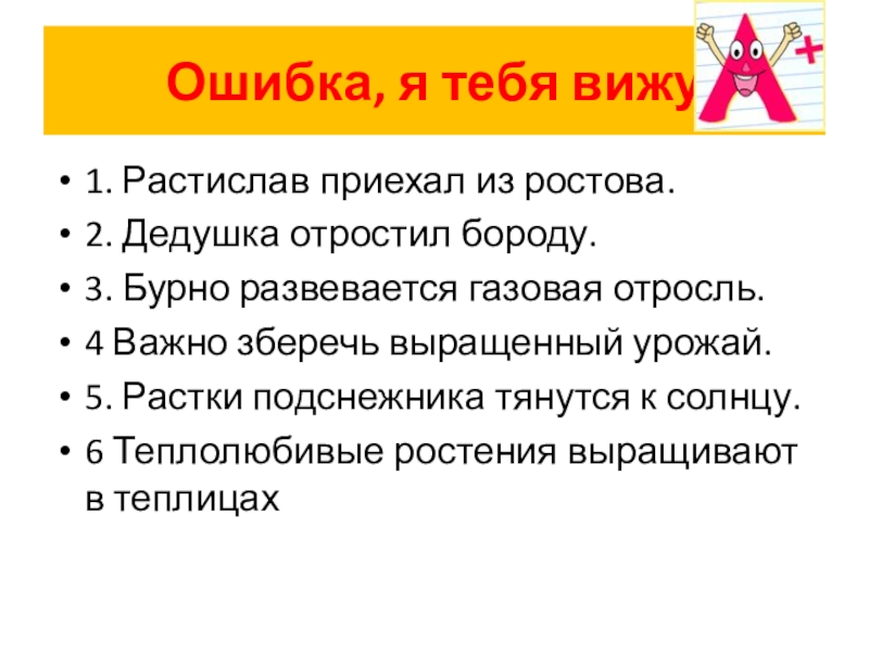 прил_жение, оз_рять, з_ренька, з_рница, з_ря, з_рька, подг_рать, подг_реть, заг_р, заг_релый, подг_реть, наг_реть, выг_реть, заг_реть, сл_гаемые, выр_сли, выр_стать, выр_щенный, возр_ст, ср_щение, р_стительность, г_рит, р_внина, р_вняйсь, м_кать в сметану, г_рели, р_вняется, р_сток, отр_сль, ур_вень, ср_внение, Р_стислав, выр_внять грядки, ср_внить с кем-то, распол_житься, составить ур_внение, р_стение, город Р_стов, непром_каемый плащ, водор_сли, з_ря разг_рается, к_сались, нар_щение, сл_жение, к_снуться, оз_рена, дог_рали.