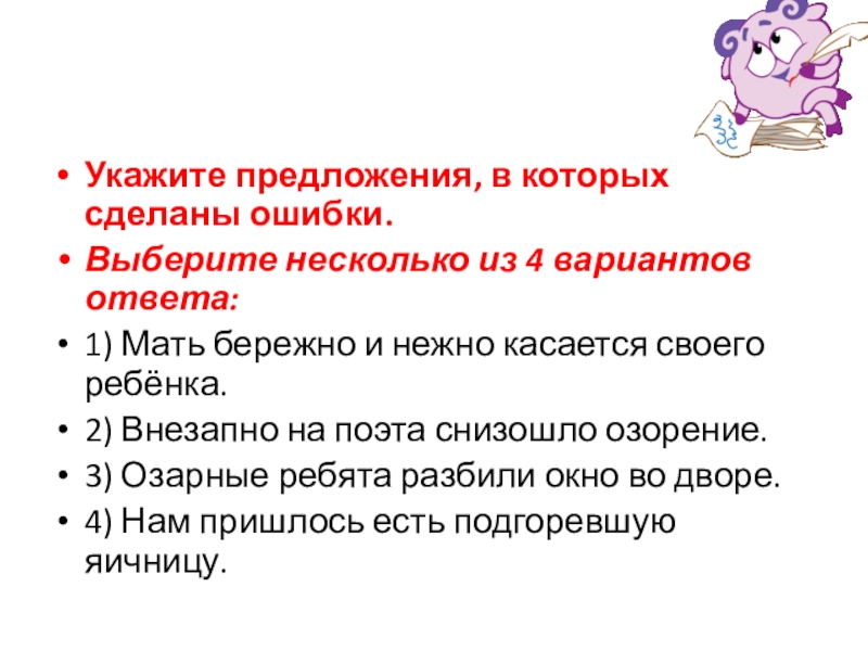 Слайд 14Укажите предложения, в которых сделаны ошибки.