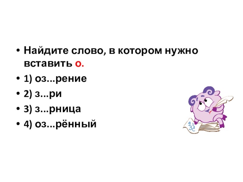 Слайд 13Найдите слово, в котором нужно вставить о.