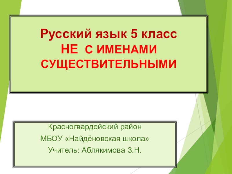 Русский язык 5 класс НЕ С ИМЕНАМИ СУЩЕСТВИТЕЛЬНЫМИ Красногвардейский районМБОУ «Найдёновская школа»Учитель: Аблякимова З.Н.