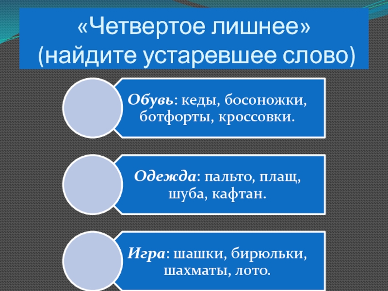 «Четвертое лишнее»  (найдите устаревшее слово)