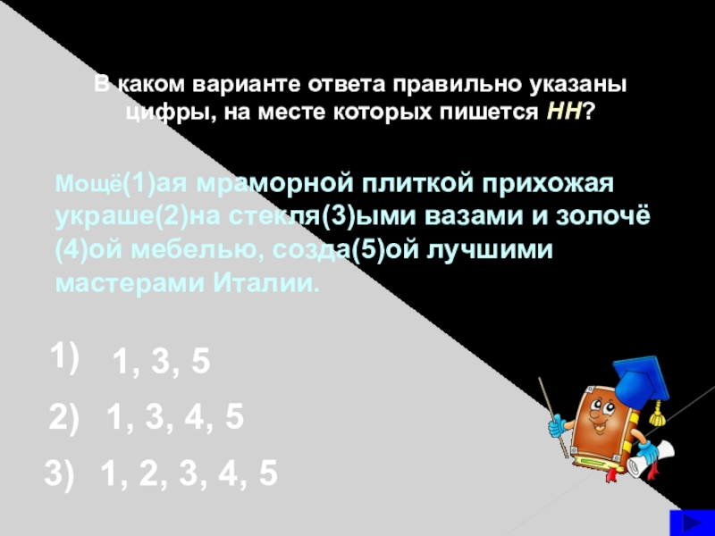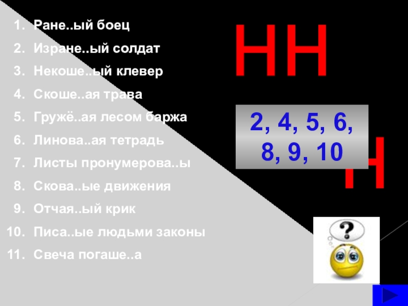 В каком варианте ответа правильно указаны цифры, на месте которых пишется НН?