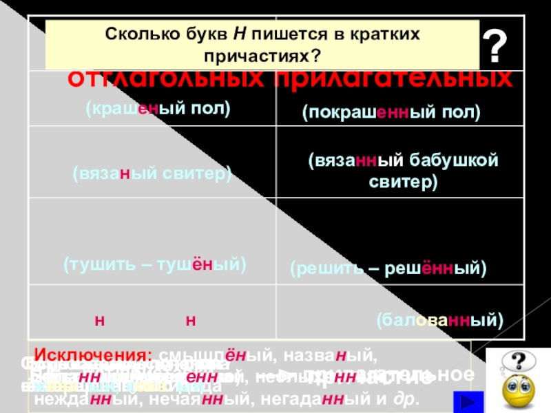 3. Н и НН в страдательных причастиях прошедшего времени и в отглагольных прилагательных;