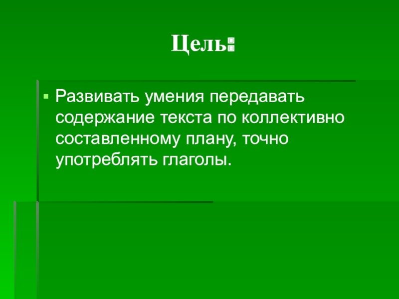 Развивать умения передавать содержание текста по коллективно составленному плану, точно употреблять