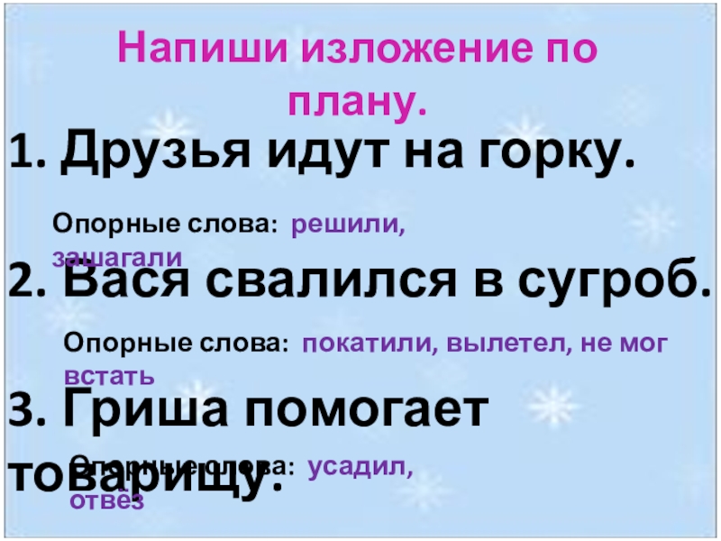Опорные слова: решили, зашагали