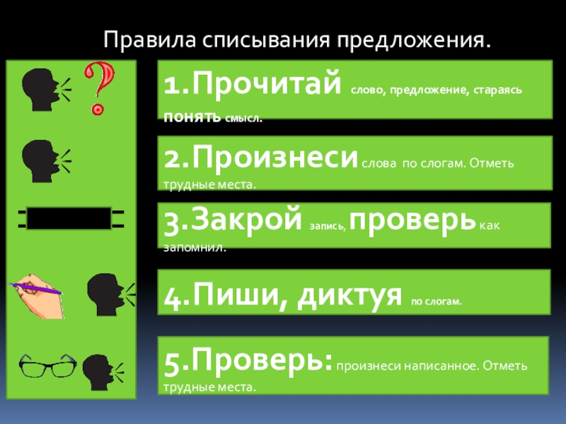 5.Проверь: произнеси написанное. Отметь трудные места.