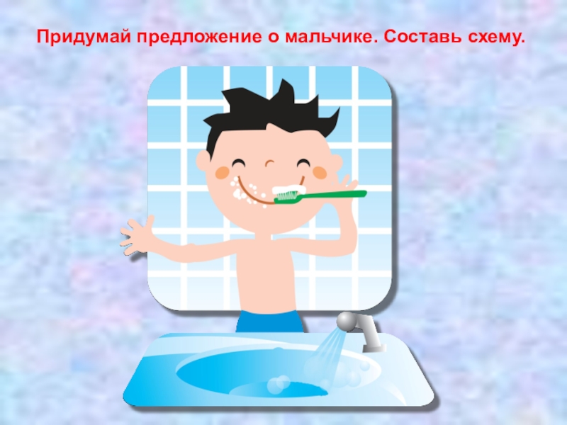 Слайд 15Придумай предложение о мальчике. Составь схему.