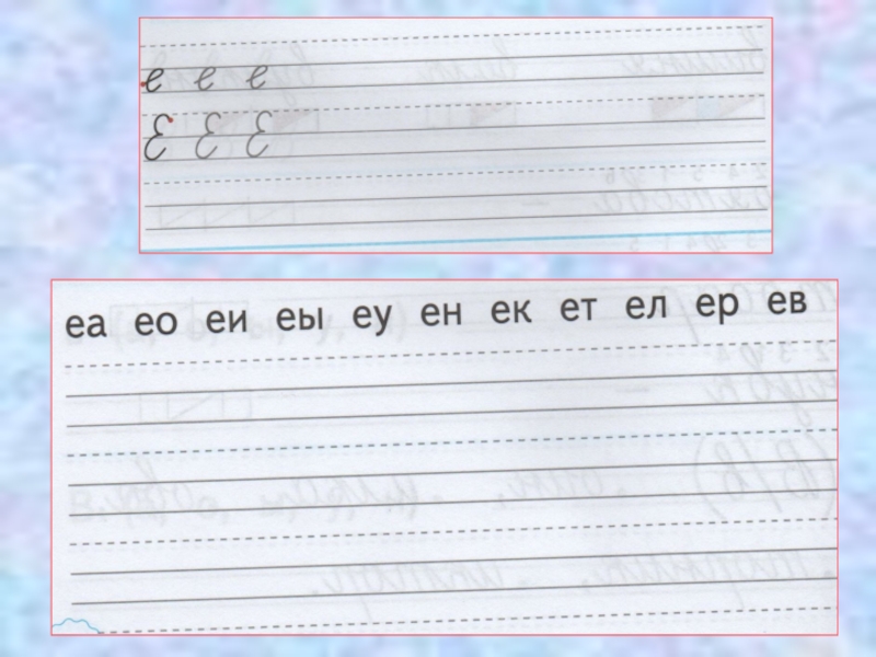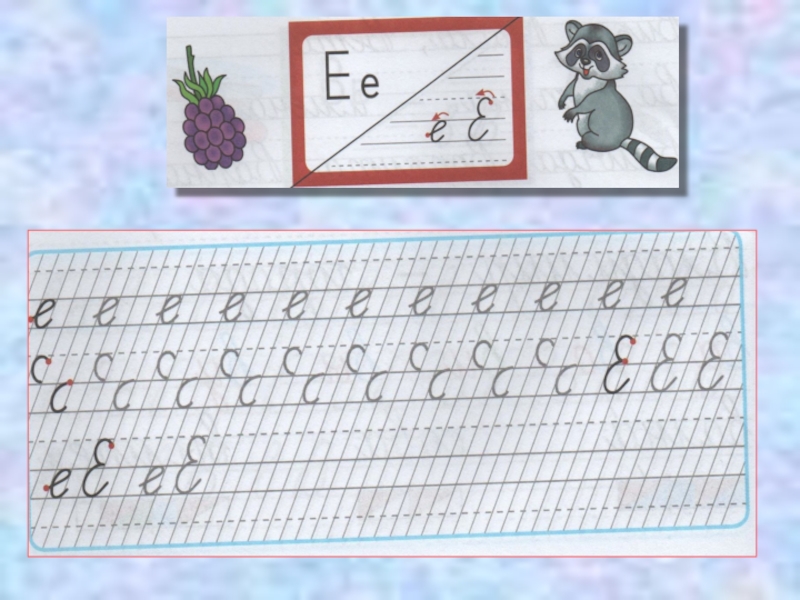 Презентация, доклад по русскому языку (обучение письму) Написание буквы Е, е 1 класс