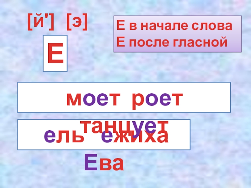 [й'][э]Е ель  ежиха Евамоет роет танцуетЕ в начале словаЕ после гласной