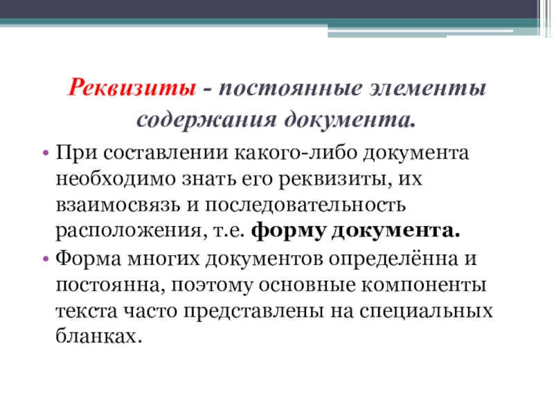 Слайд 11Реквизиты - постоянные элементы содержания документа.