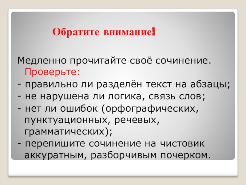 - перепишите сочинение на чистовик аккуратным, разборчивым почерком.