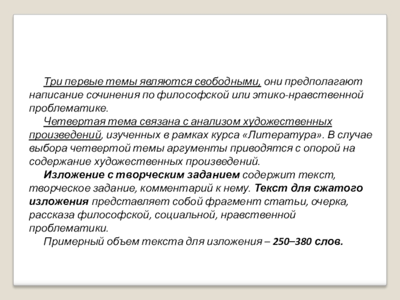 Слайд 5Три первые темы являются свободными, они предполагают написание сочинения по философской