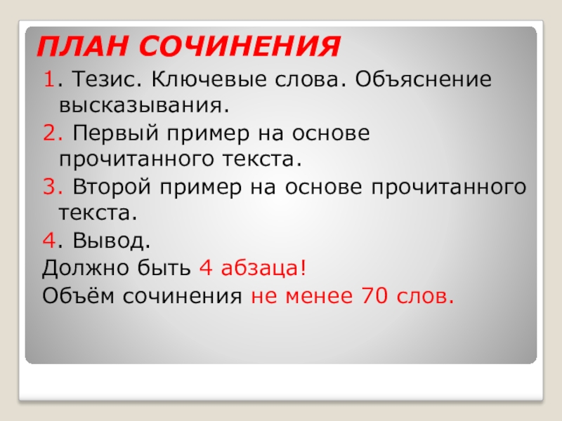1. Тезис. Ключевые слова. Объяснение высказывания.