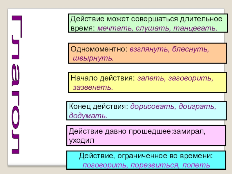Действие может совершаться длительное время: мечтать, слушать, танцевать.