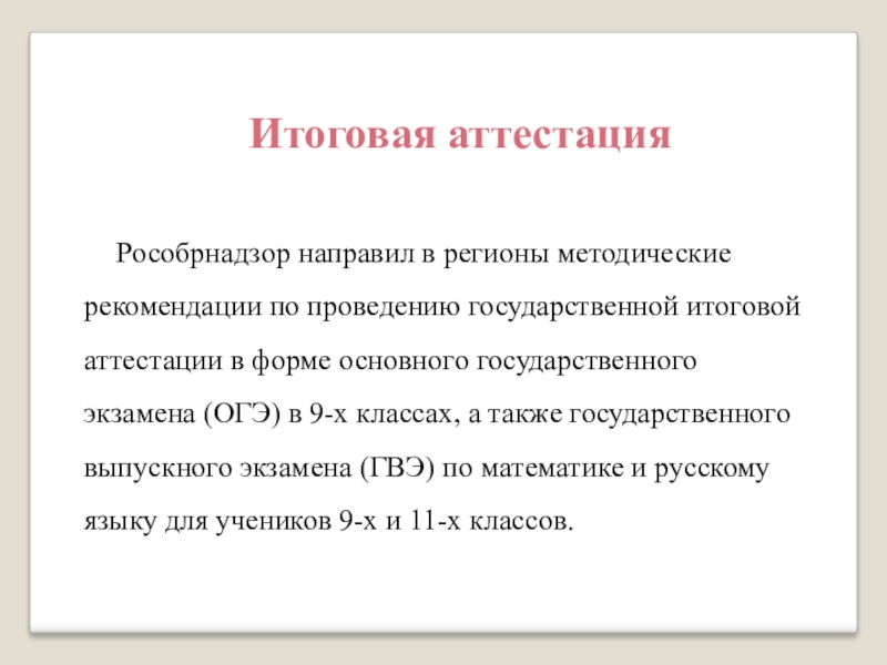 Слайд 3Итоговая аттестация в форме государственного выпускного экзамена в 9-м и 11-м