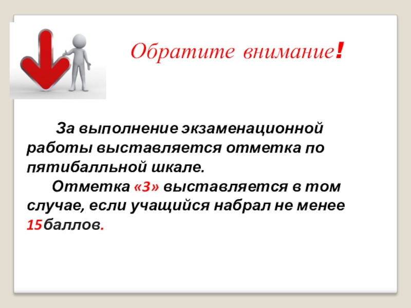 Слайд 16Экзаменационная отметка за государственный выпускной экзамен по русскому языку определяется как