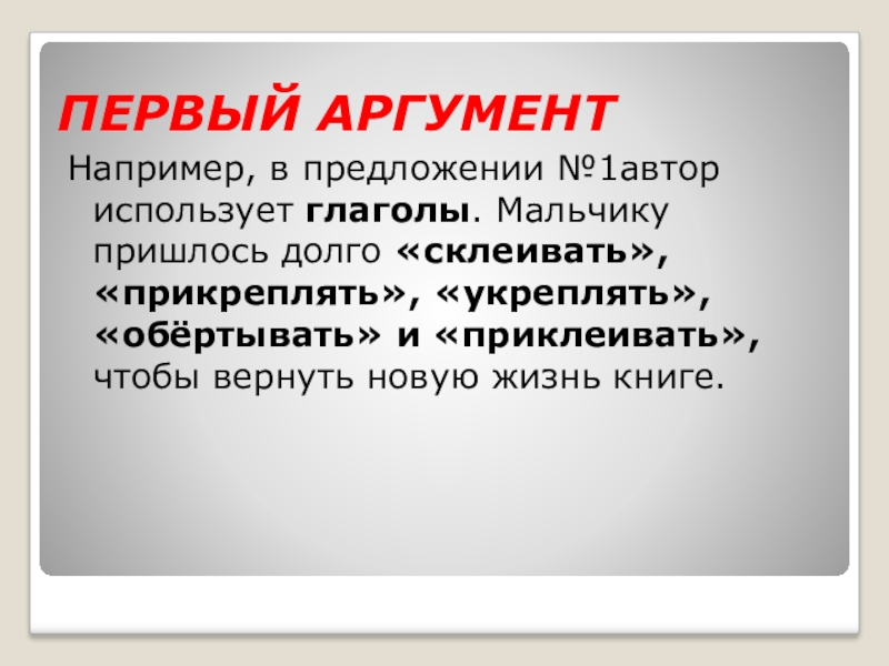Слайд 52ПЕРВЫЙ АРГУМЕНТ