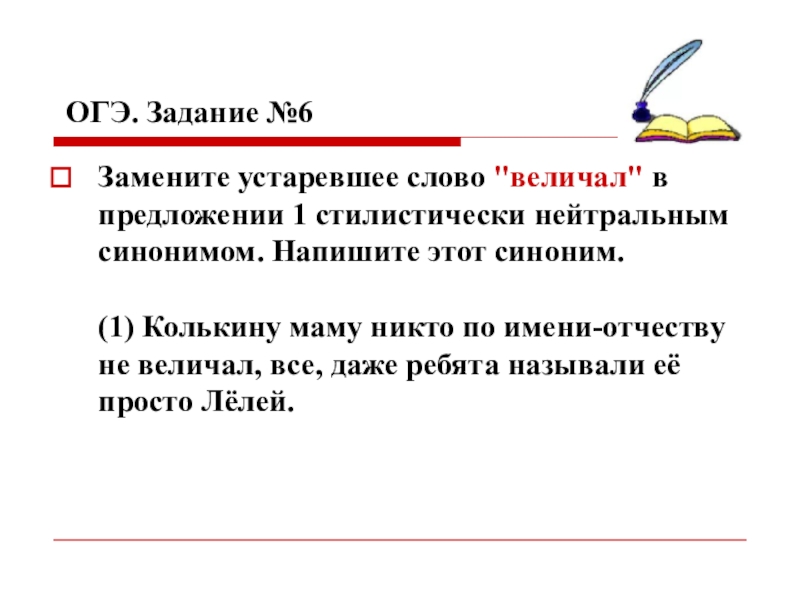 Замените устаревшее слово "величал" в предложении 1 стилистически