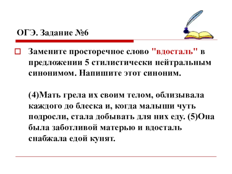 Замените просторечное слово "вдосталь" в предложении 5 стилистически нейтральным