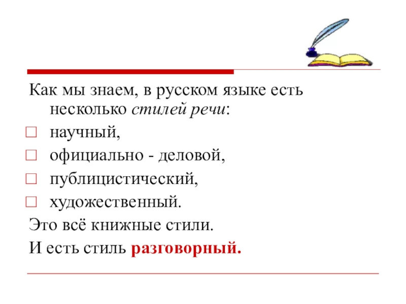 Как мы знаем, в русском языке есть несколько стилей речи: