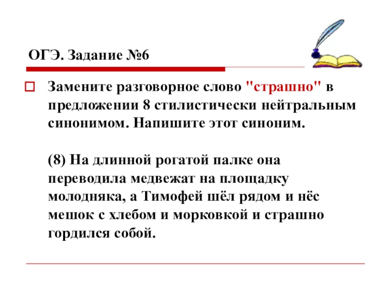 Замените разговорное слово "страшно" в предложении 8 стилистически нейтральным