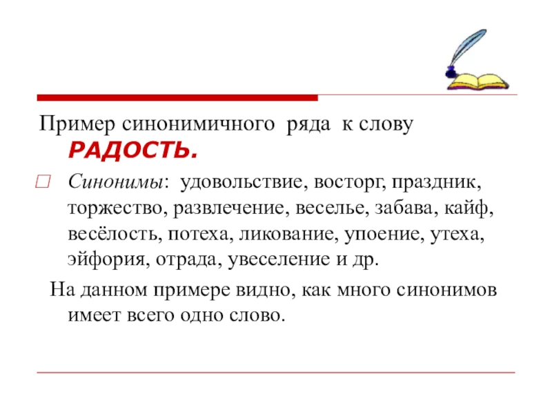 Слайд 10Пример синонимичного ряда к слову РАДОСТЬ.