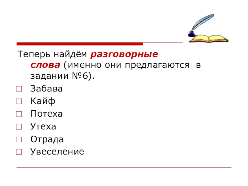 Теперь найдём разговорные слова (именно они предлагаются в задании №6).