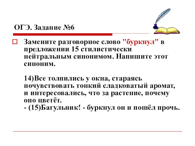 Замените разговорное слово "буркнул" в предложении 15 стилистически нейтральным