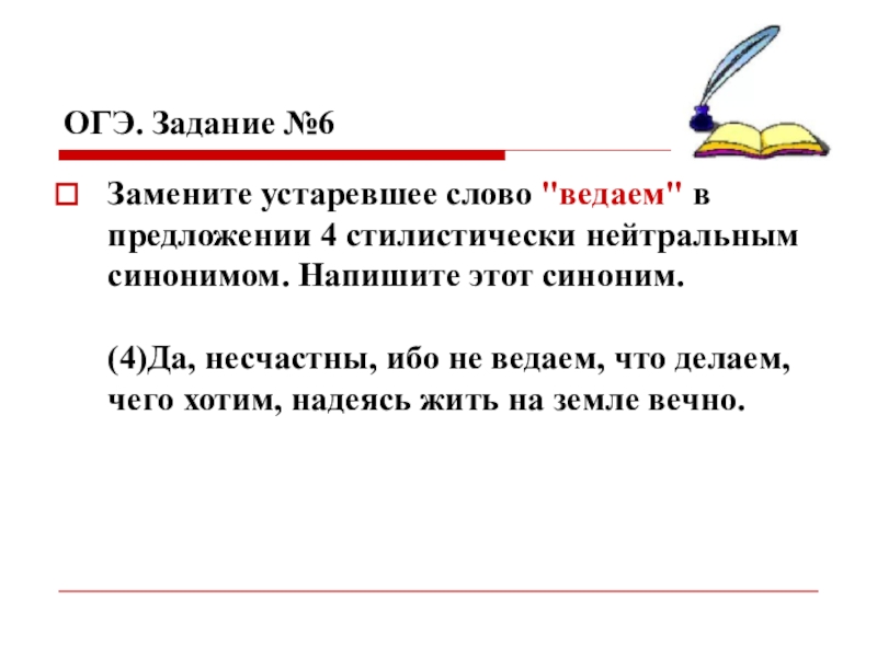 Замените устаревшее слово "ведаем" в предложении 4 стилистически нейтральным