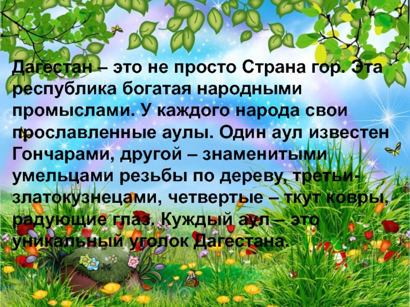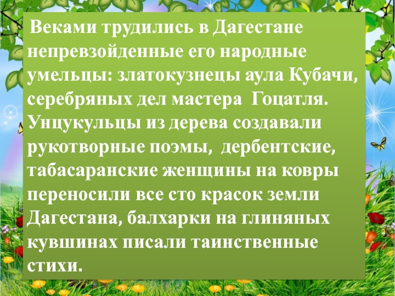 Презентация, доклад по русскому языку + окружающий мир на тему Народные промыслы Дагестана