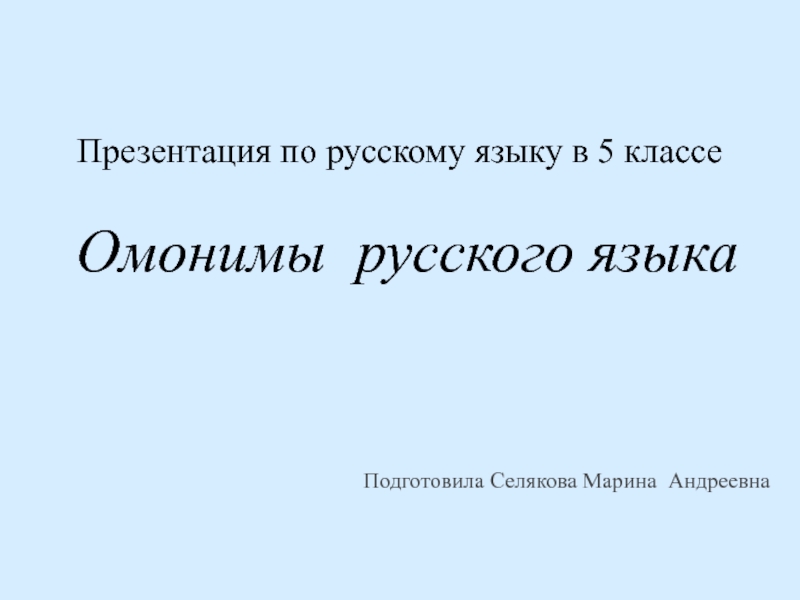 Слайд 1 Презентация по русскому языку в 5 классе Омонимы русского языка