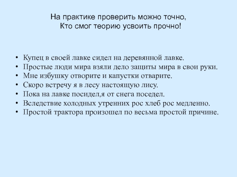 Слайд 14 На практике проверить можно точно, Кто смог теорию усвоить прочно!