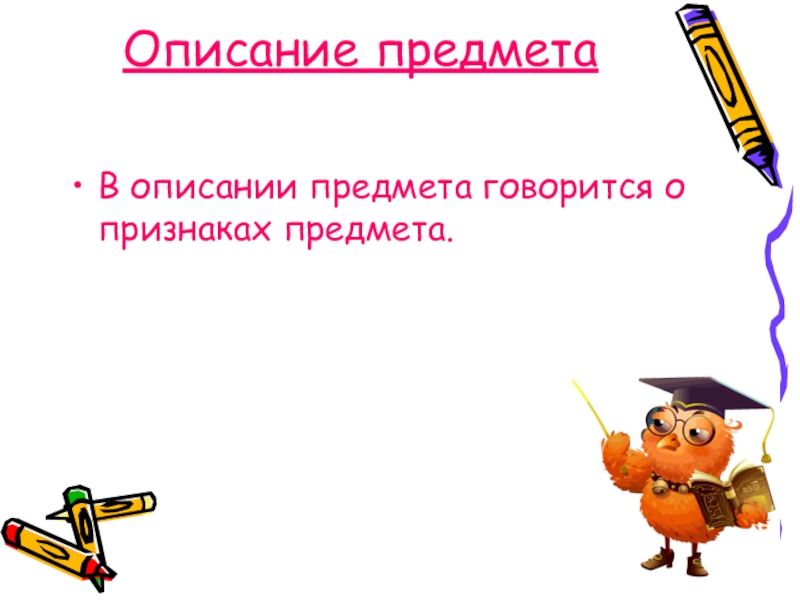 Описание предметаВ описании предмета говорится о признаках предмета.