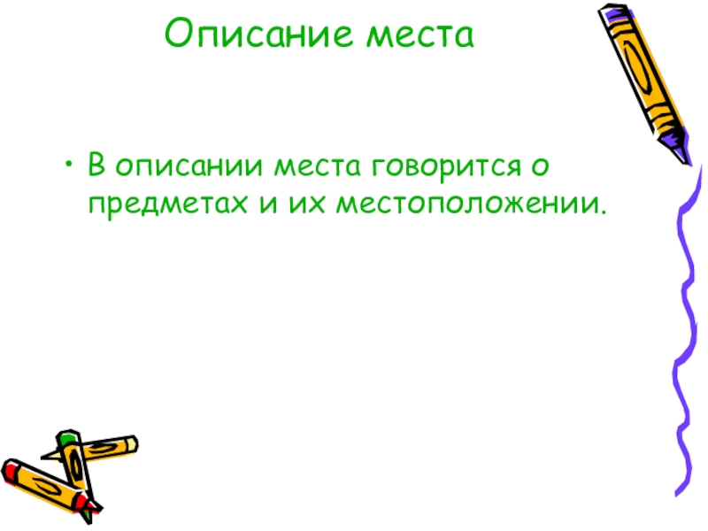 Описание местаВ описании места говорится о предметах и их местоположении.
