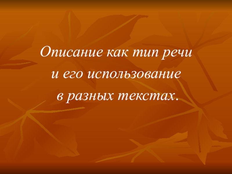 Описание – изображение какого-либо явления действительности, перечисление общего и