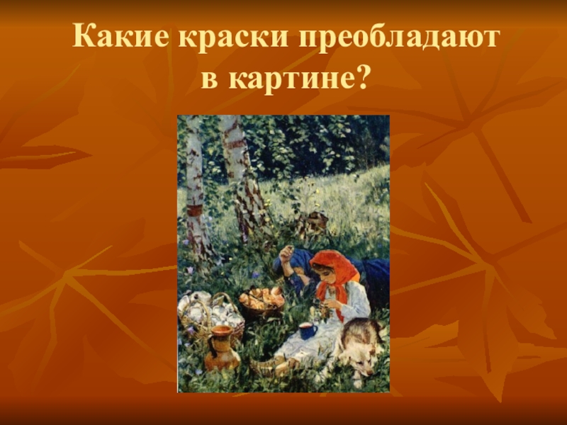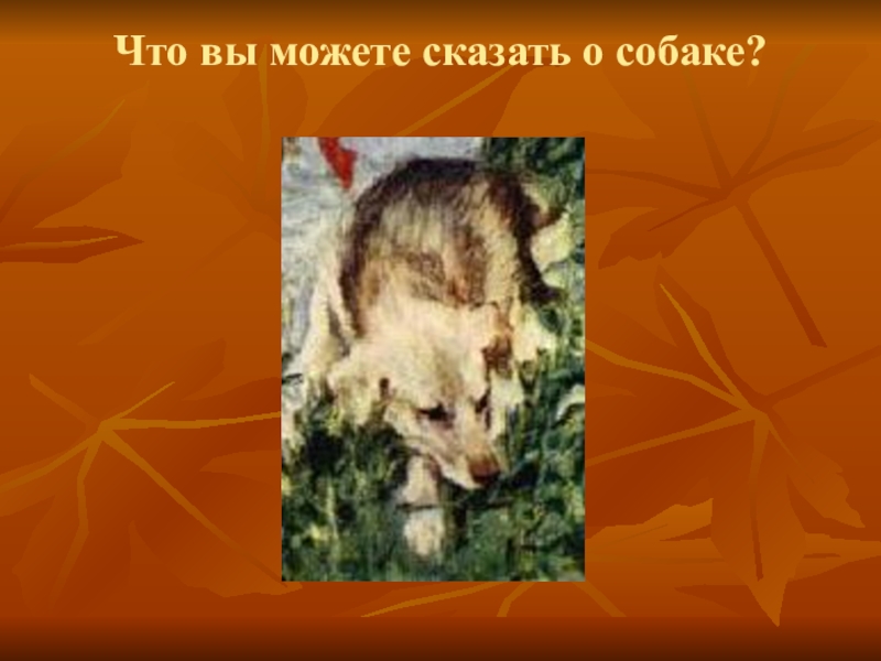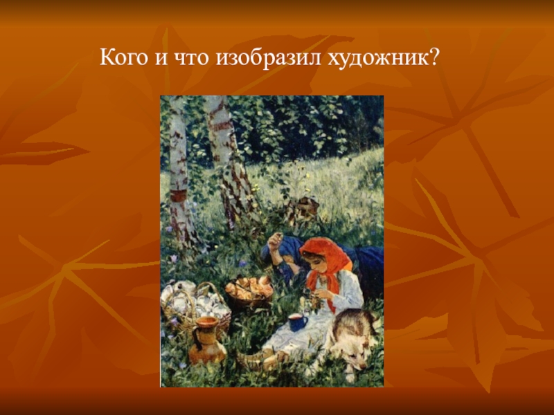 Возможный план 1. Слово о художнике.2. Описание картины:    а) люди и собака;