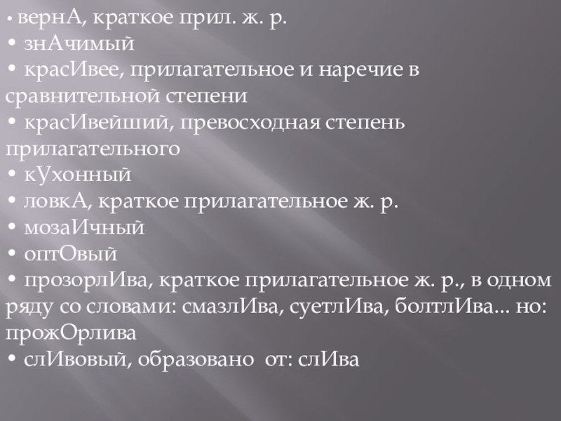 Слайд 9• вернА, краткое прил. ж. р.