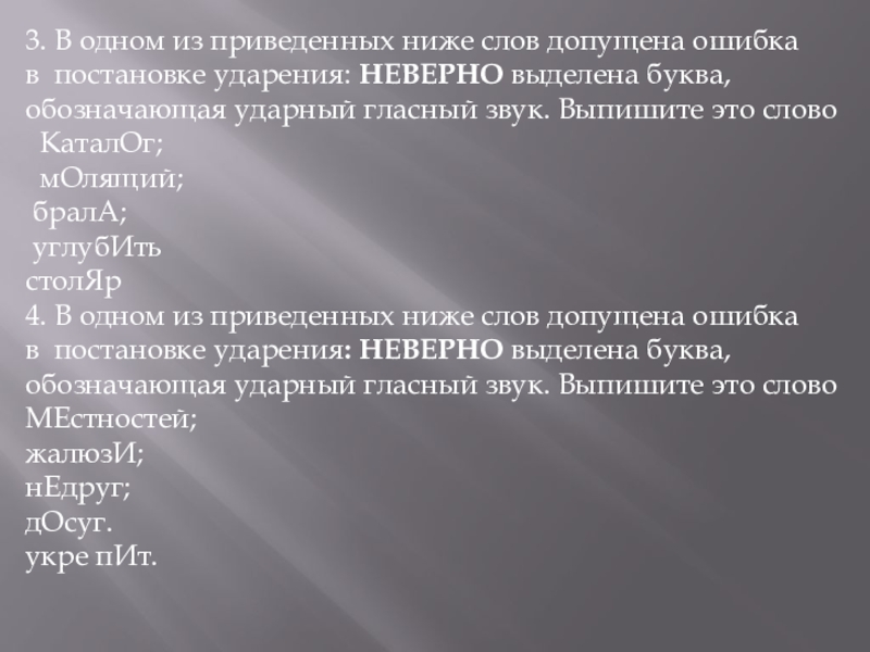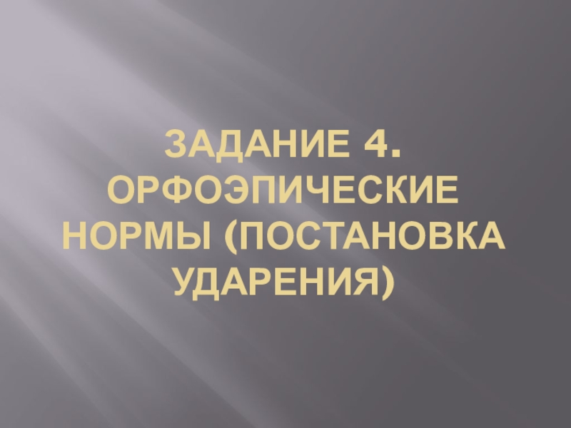 Слайд 1Задание 4. Орфоэпические нормы (постановка ударения)