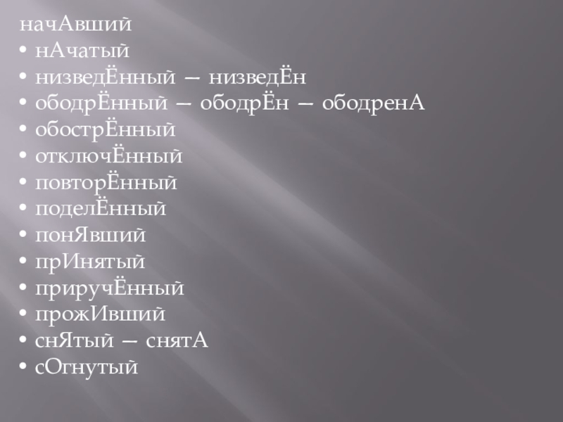 Слайд 247. В одном из приведенных ниже слов допущена ошибка в постановке