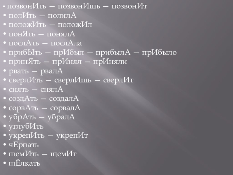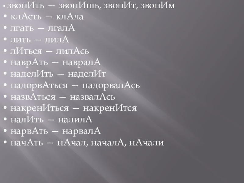 Слайд 12• звонИть — звонИшь, звонИт, звонИм