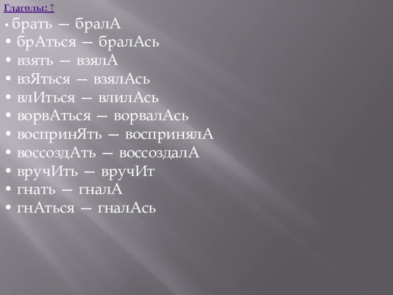 Слайд 10Глаголы: ↑