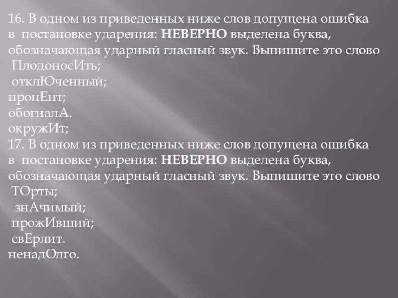 Слайд 2916. В одном из приведенных ниже слов допущена ошибка в постановке