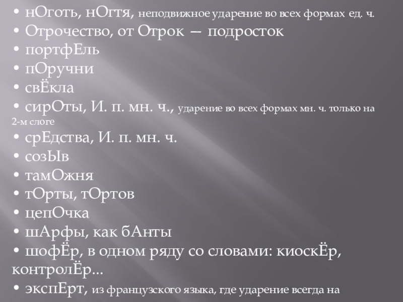 Слайд 8• нОготь, нОгтя, неподвижное ударение во всех формах ед. ч.