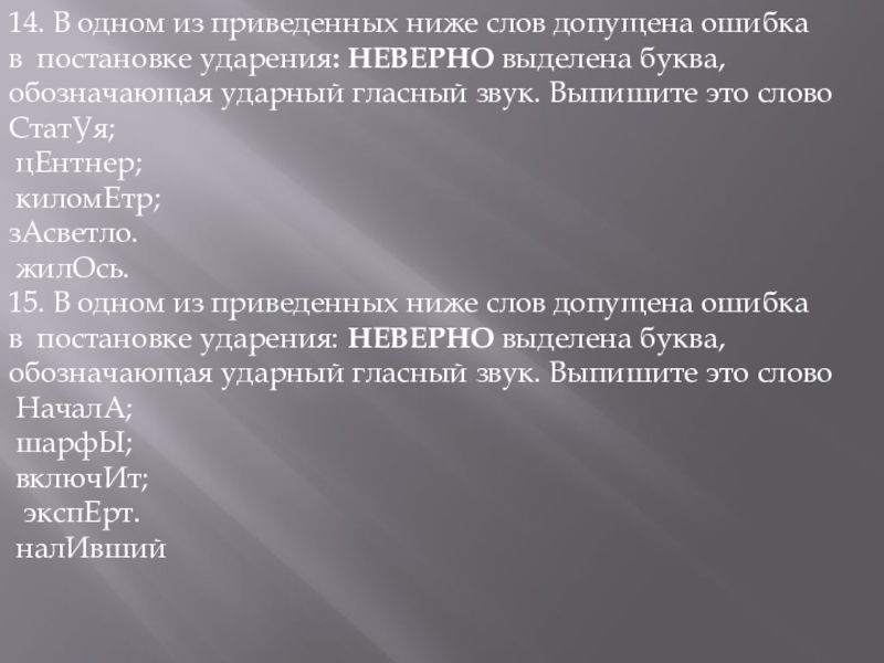Слайд 2814. В одном из приведенных ниже слов допущена ошибка в постановке