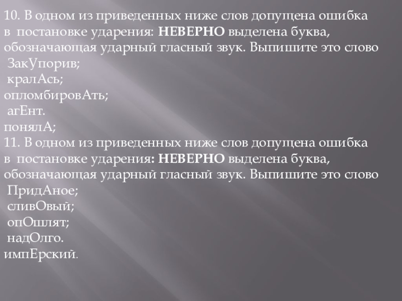 Слайд 2610. В одном из приведенных ниже слов допущена ошибка в постановке