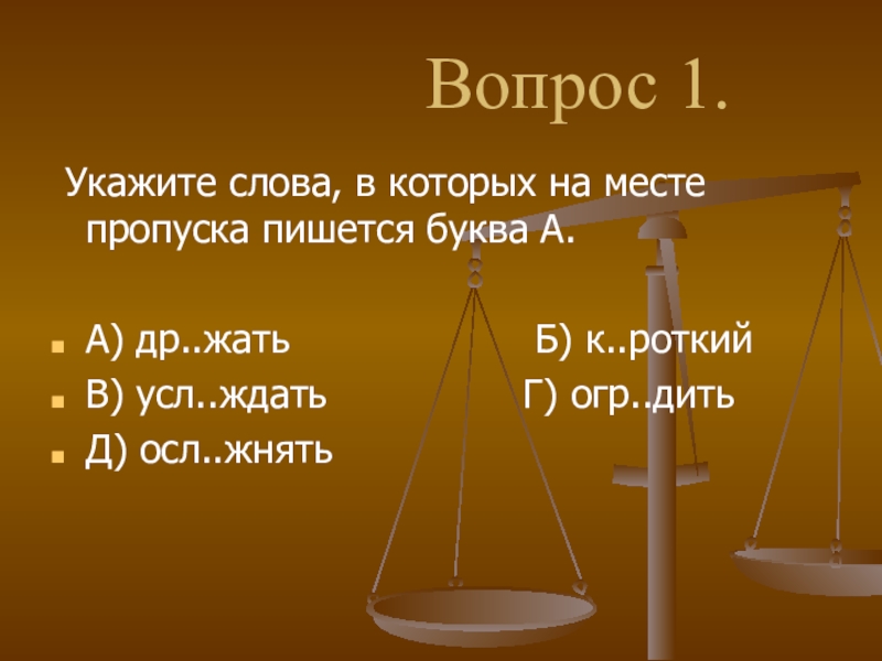 Вопрос 1. Укажите слова, в которых на месте пропуска