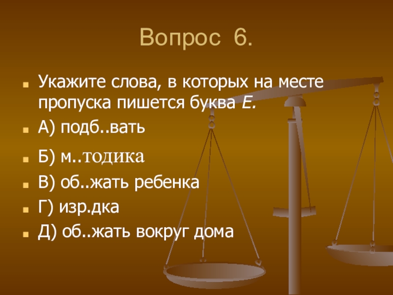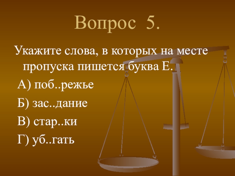 Вопрос 5.Укажите слова, в которых на месте пропуска пишется буква Е. А) поб..режье