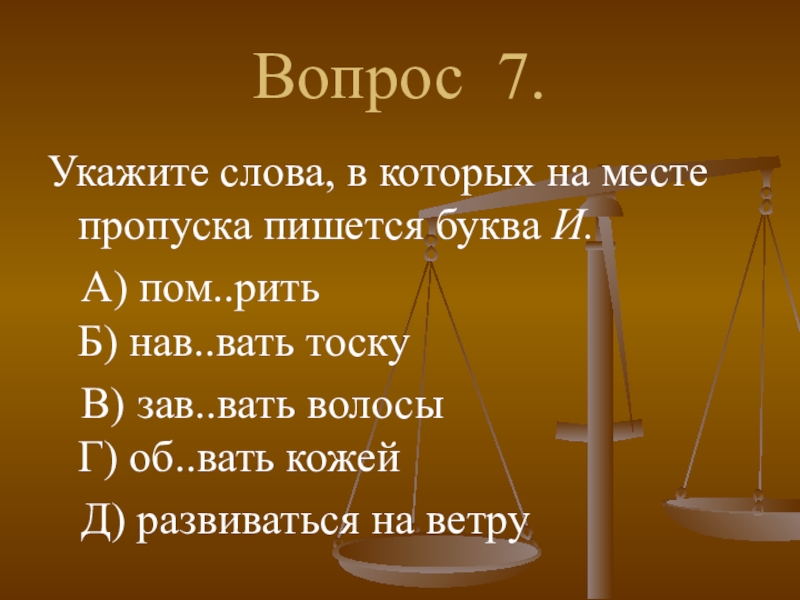 Вопрос 7.Укажите слова, в которых на месте пропуска пишется буква И.  А) пом..рить