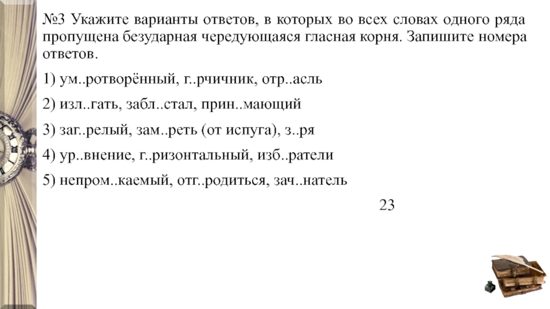Слайд 23№ 7. Укажите варианты ответов, в которых во всех словах одного