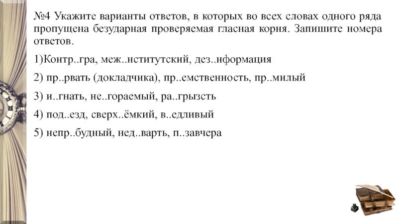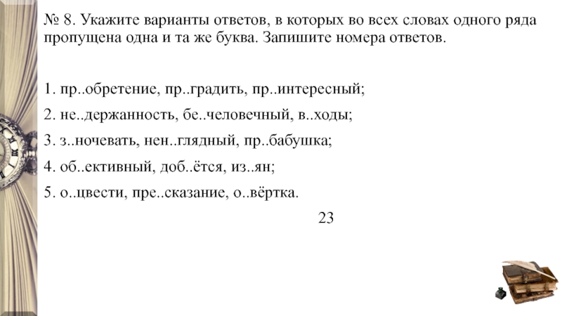 Слайд 24№ 8. Укажите варианты ответов, в которых во всех словах одного